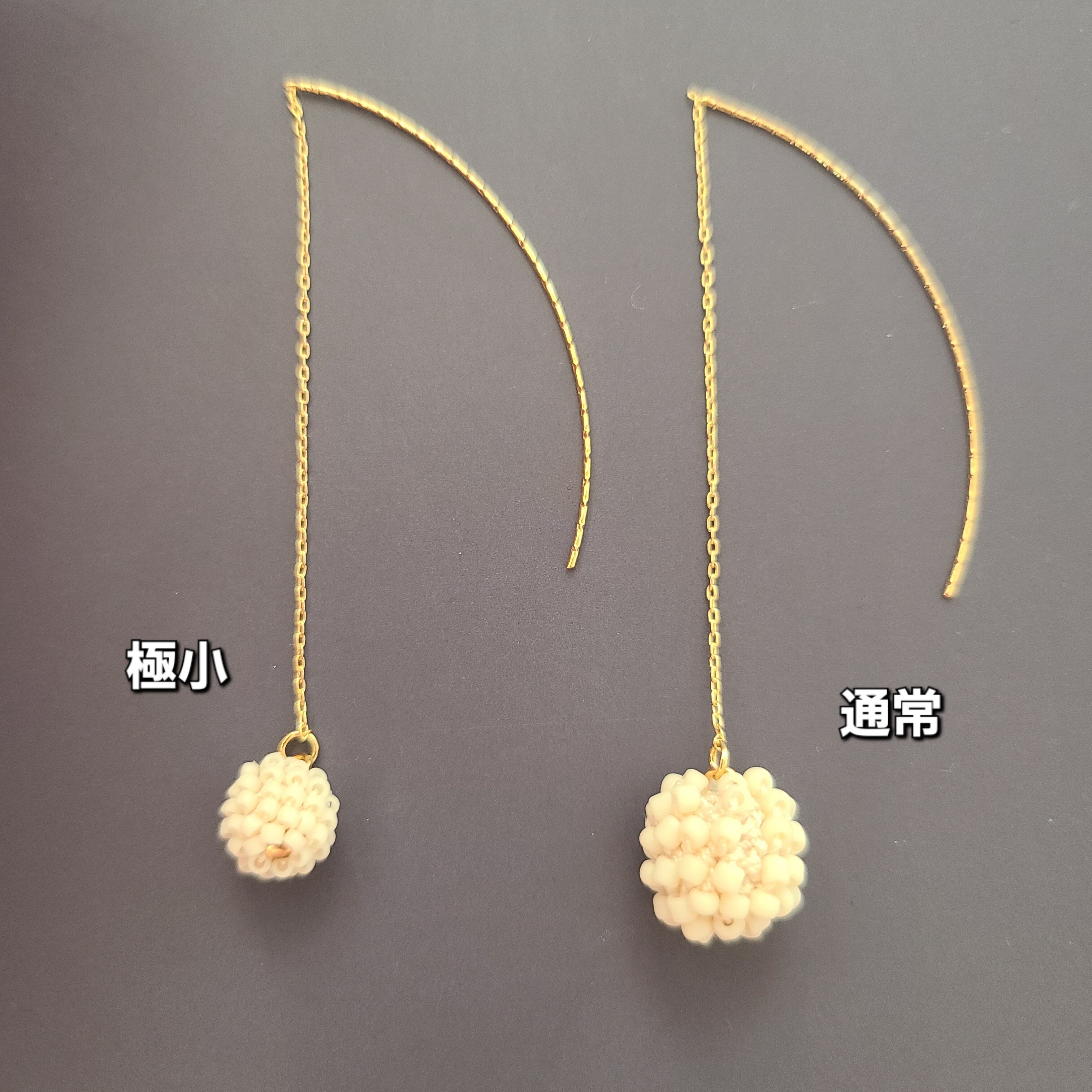 直径7ミリほどの球体状に編んだモチーフのついたアメリカンピアスです。