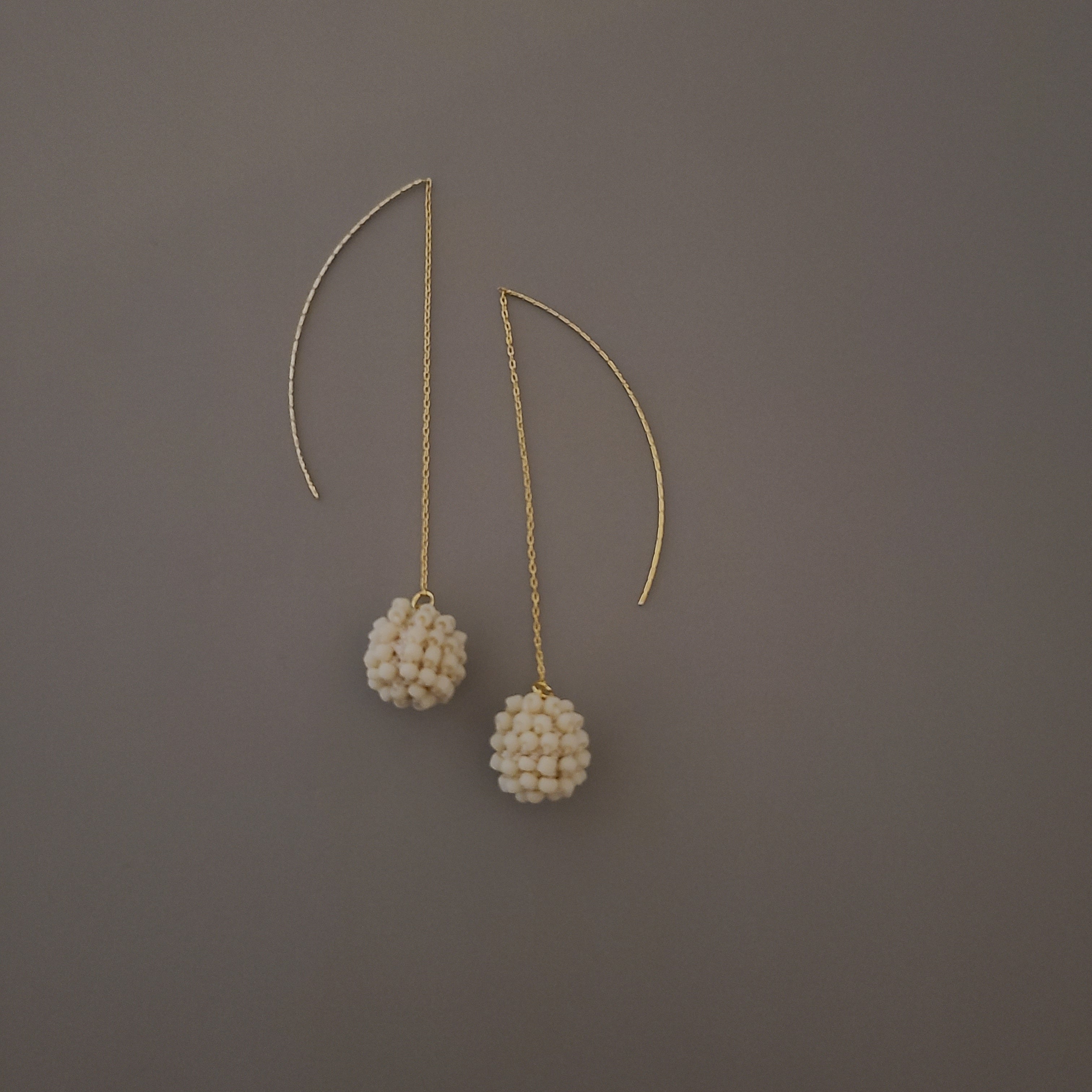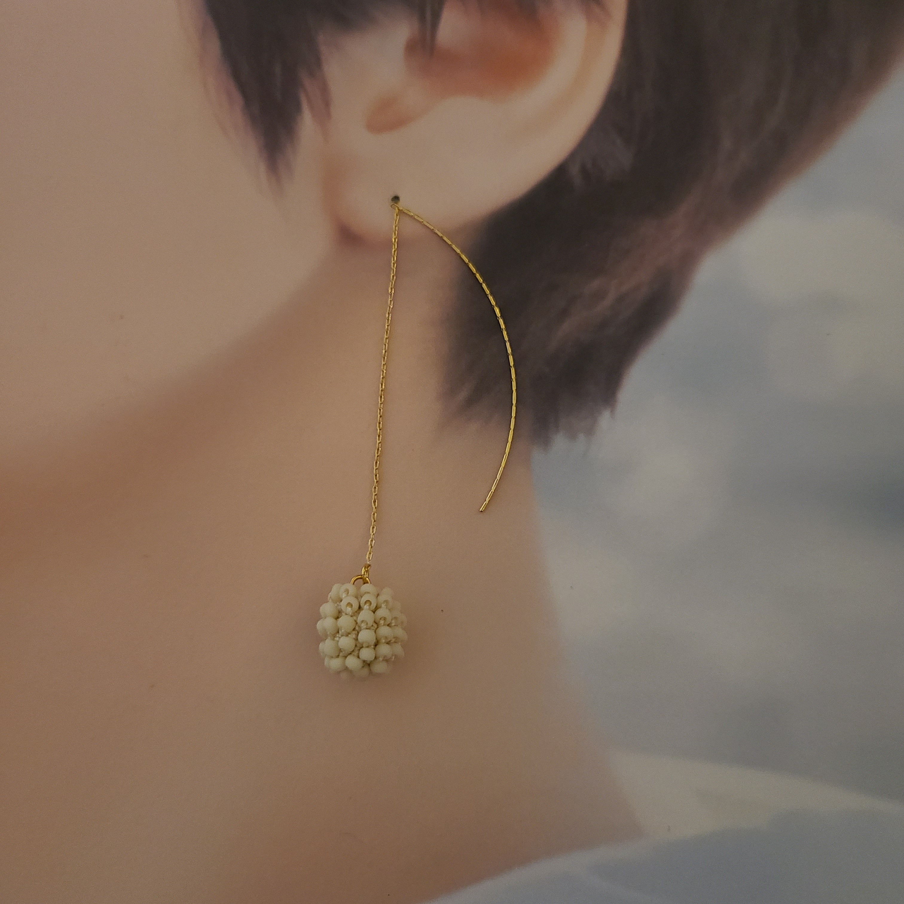 直径12ミリほどの球体状に編んだモチーフのついたアメリカンピアスです。(通常size)