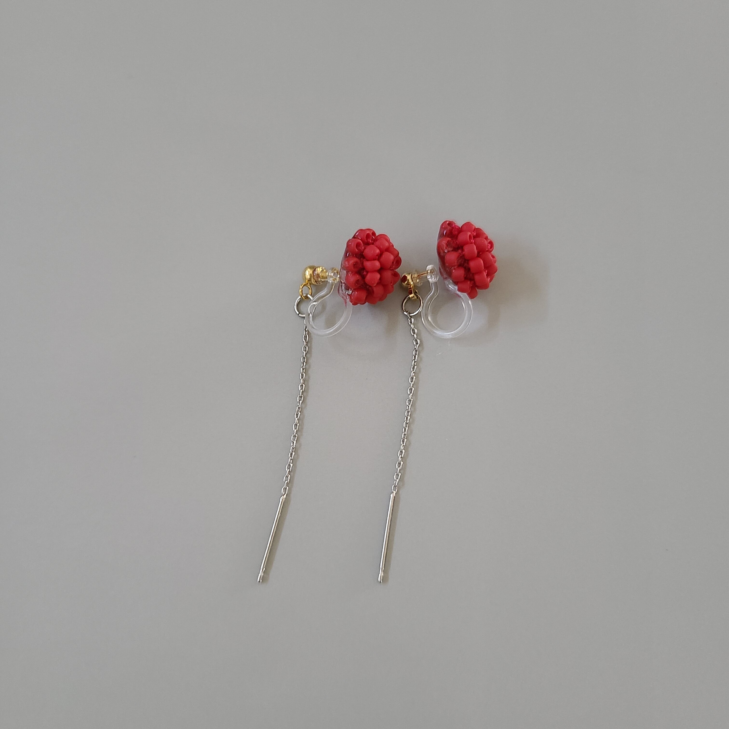 チェーンの長さは約4㎝となっております。耳に安定して装着できるように金具部分が直角になっております。