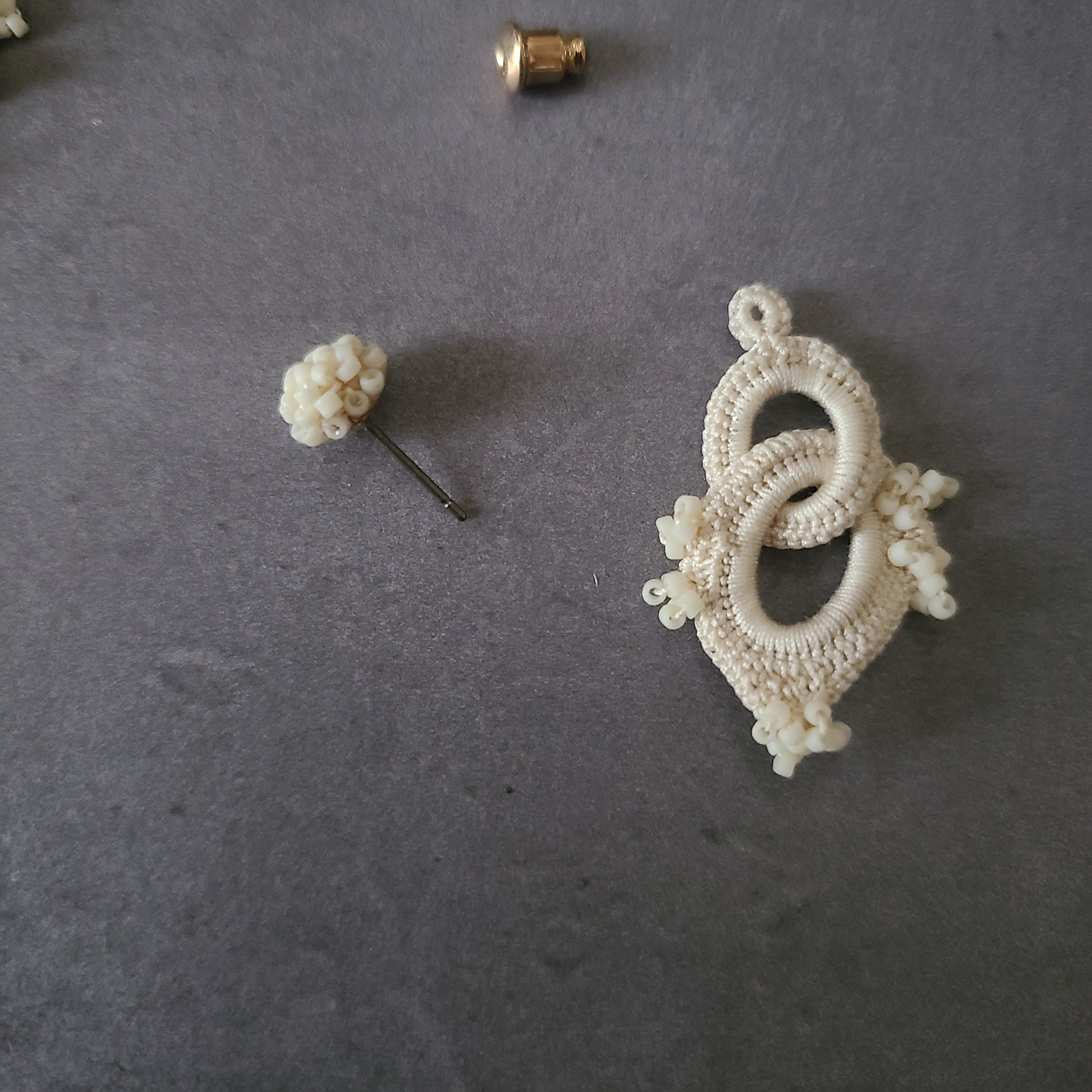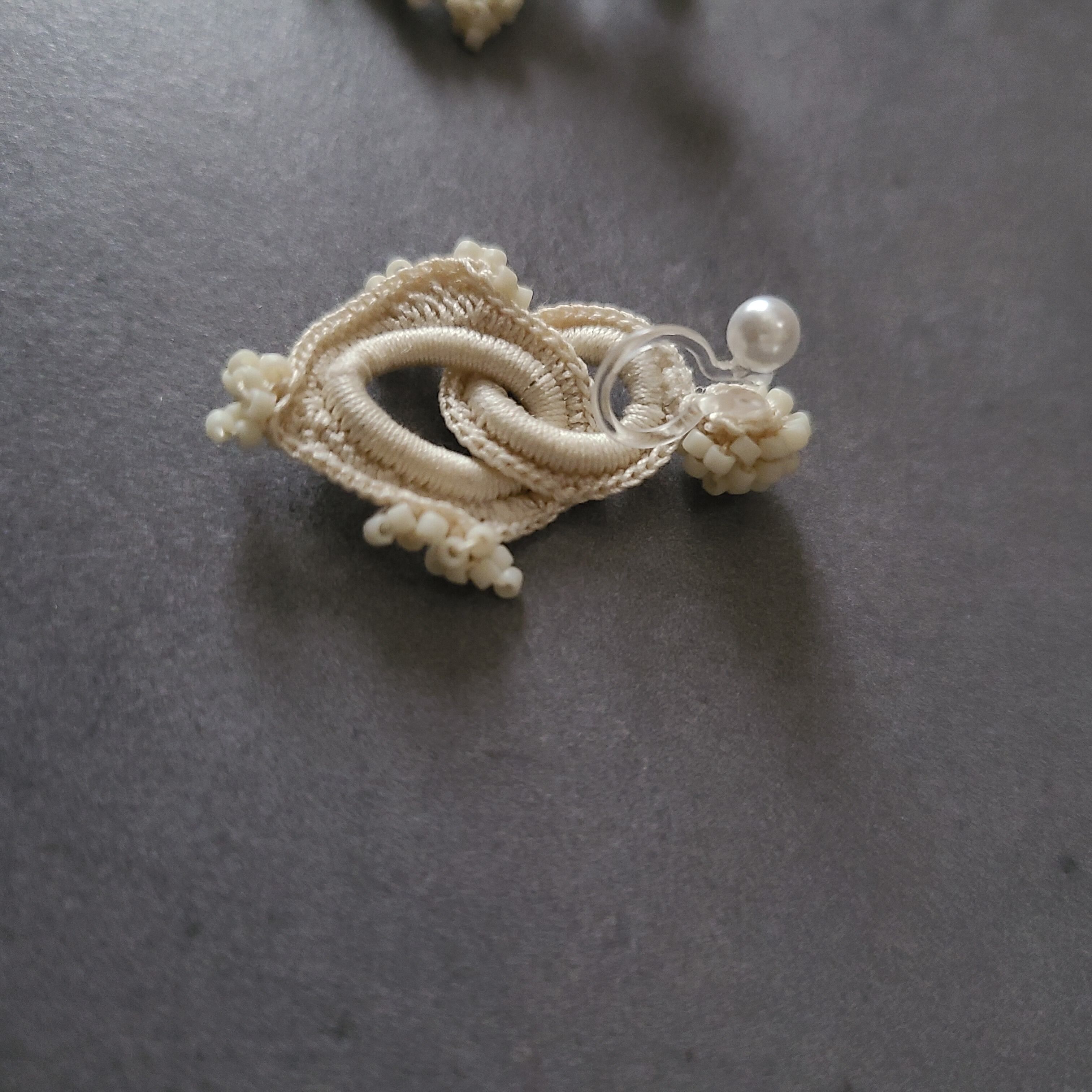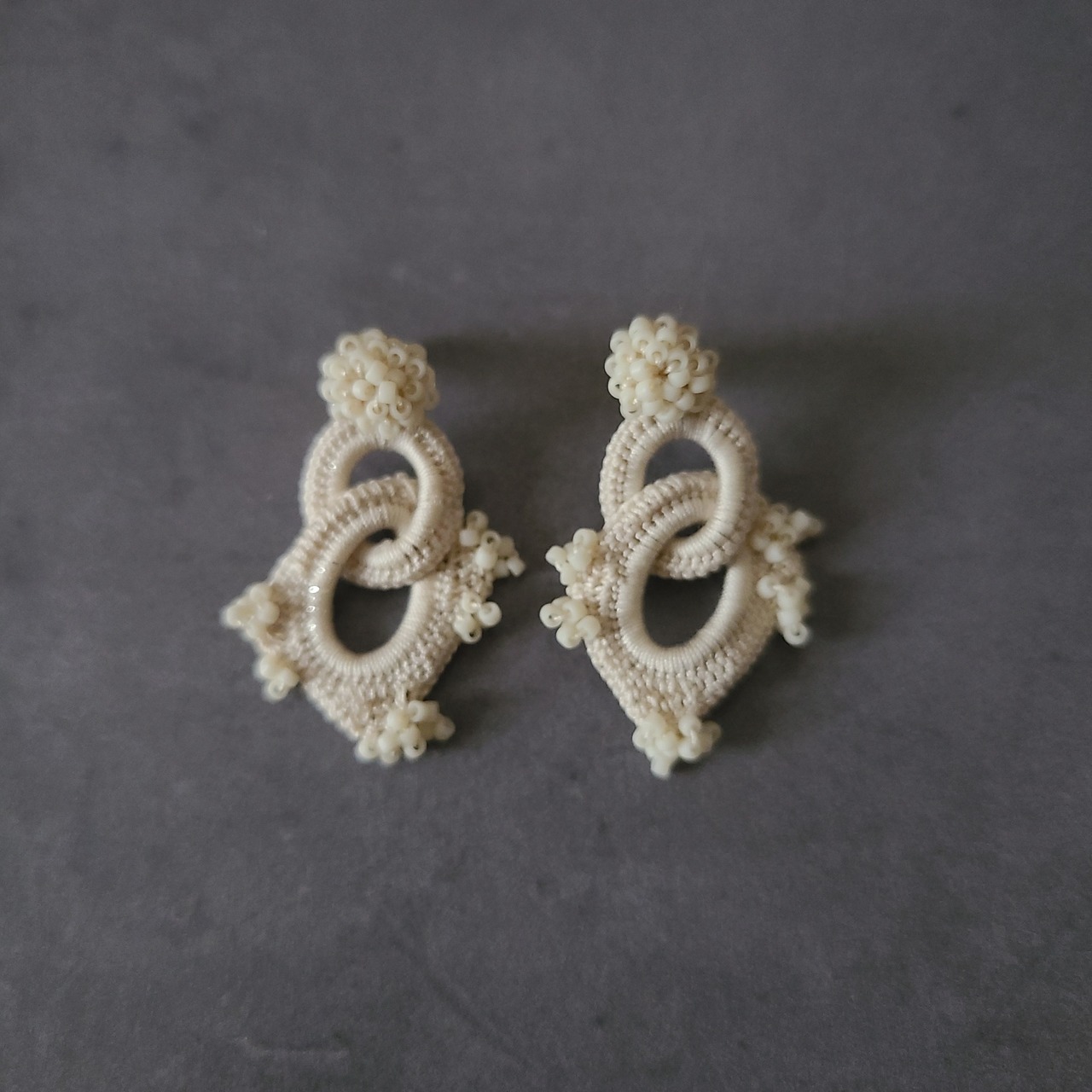 極小ビーズに合わせて小さな乙女な耳飾りに仕立てました。