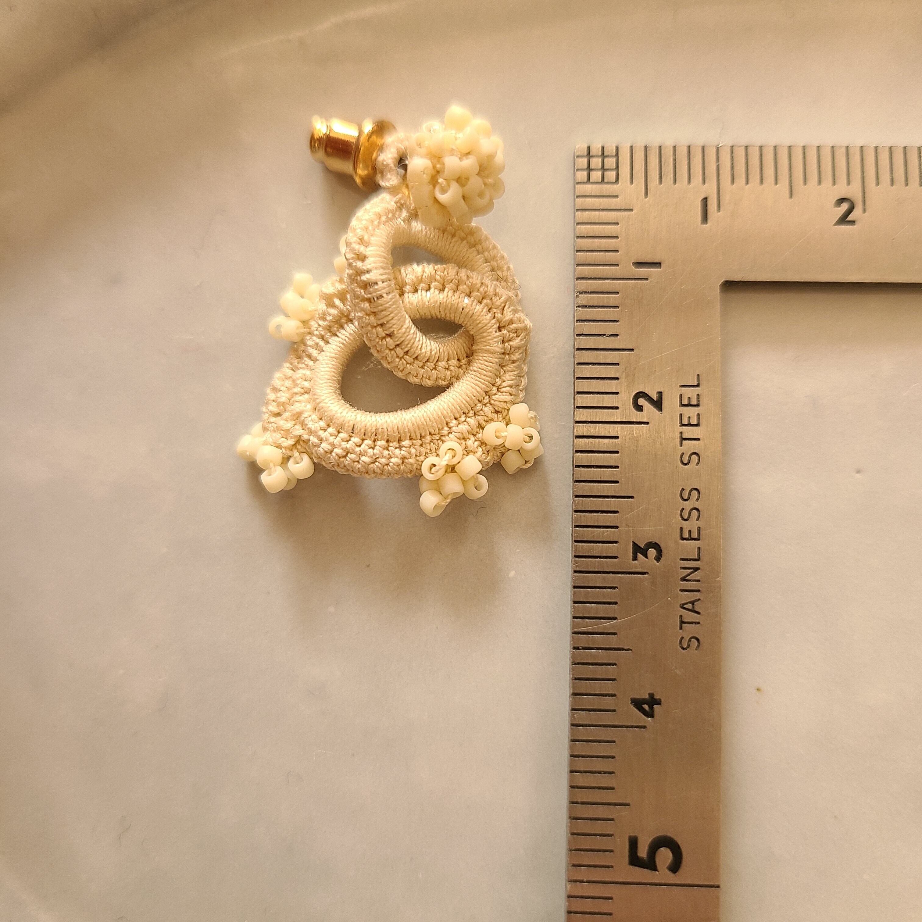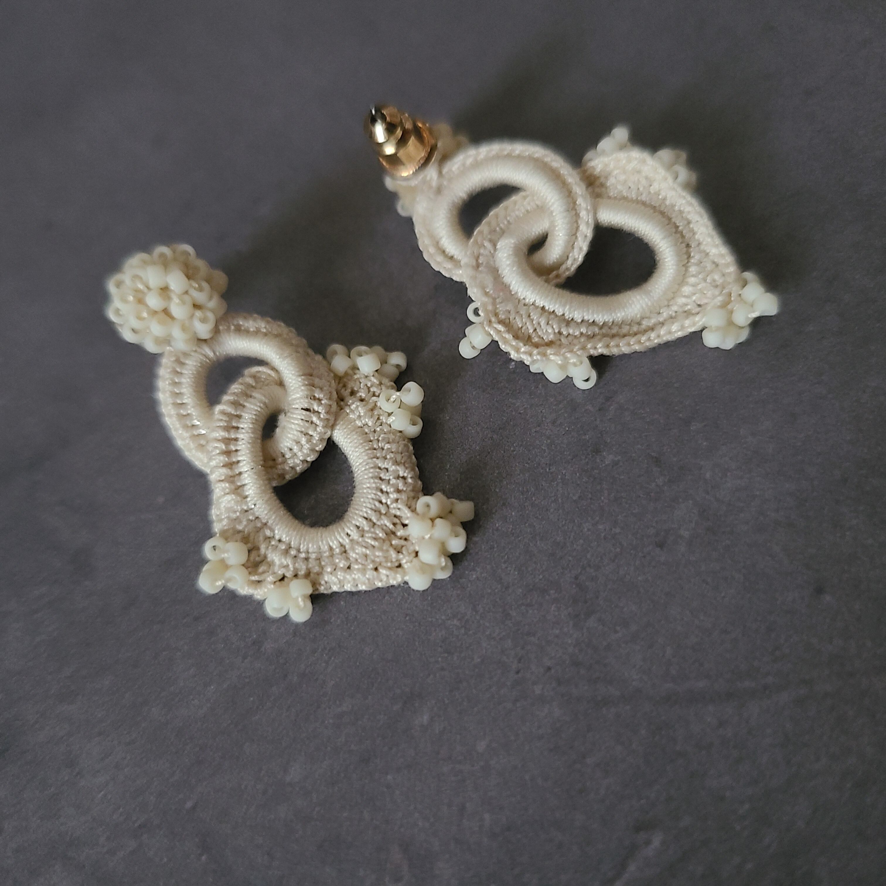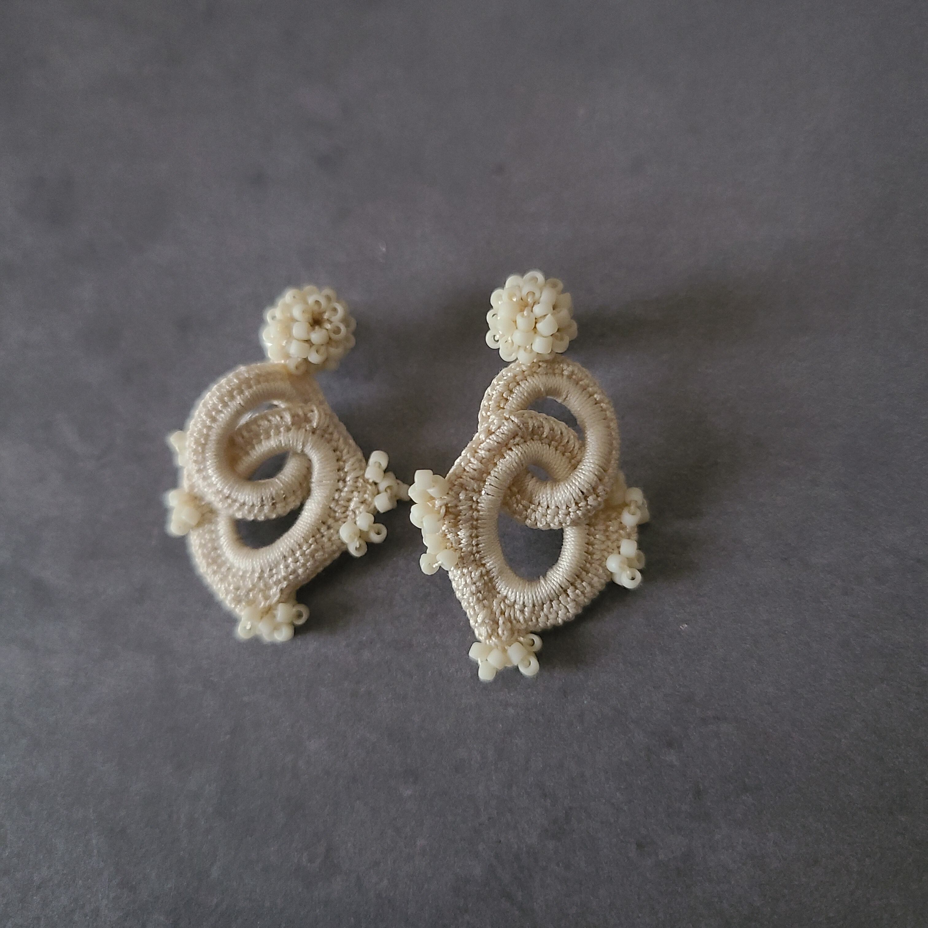 極小ビーズに合わせて小さな乙女な耳飾りに仕立てました。